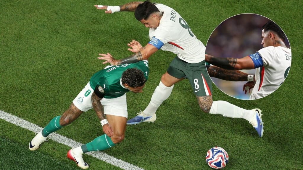 Uno de los momentos más destacados ocurrió durante el minuto 12, cuando se vivió un intenso choque entre el colombiano Richard Ríos, mediocampista del Palmeiras, y Enzo Fernández del Chelsea. Esta acción fue el preludio de una serie de encontronazos que reflejaron la competencia y la pasión de ambos equipos. La situación escaló rápidamente, con otros jugadores sumándose al ‘rifirrafe’, lo que mantuvo a los espectadores al borde de sus asientos.